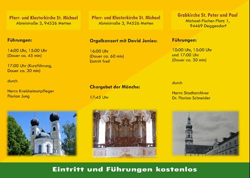 im Landkreis Deggendorf – die Pfarr- und Klosterkirche Metten und die Deggendorfer Grabkirche St. Peter und Paul – präsentiert.
