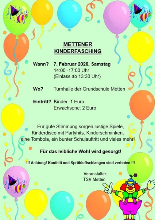 Kinderfasching in der Turnhalle der Abt-Utto-Grundschule Metten