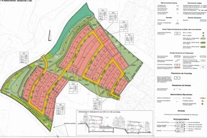 Für einige Bereiche gibt es Bebauungspläne, in denen rechtsverbindlich geregelt ist, wo und wie gebaut werden darf.
