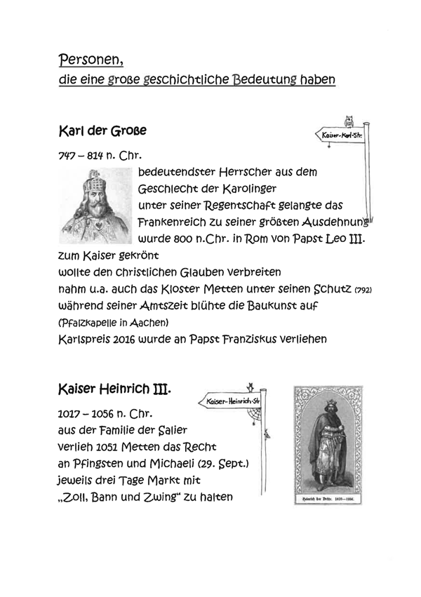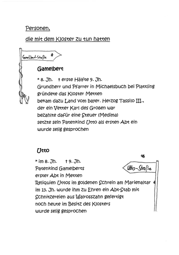 Straßennamen in Metten und deren Bedeutung.
